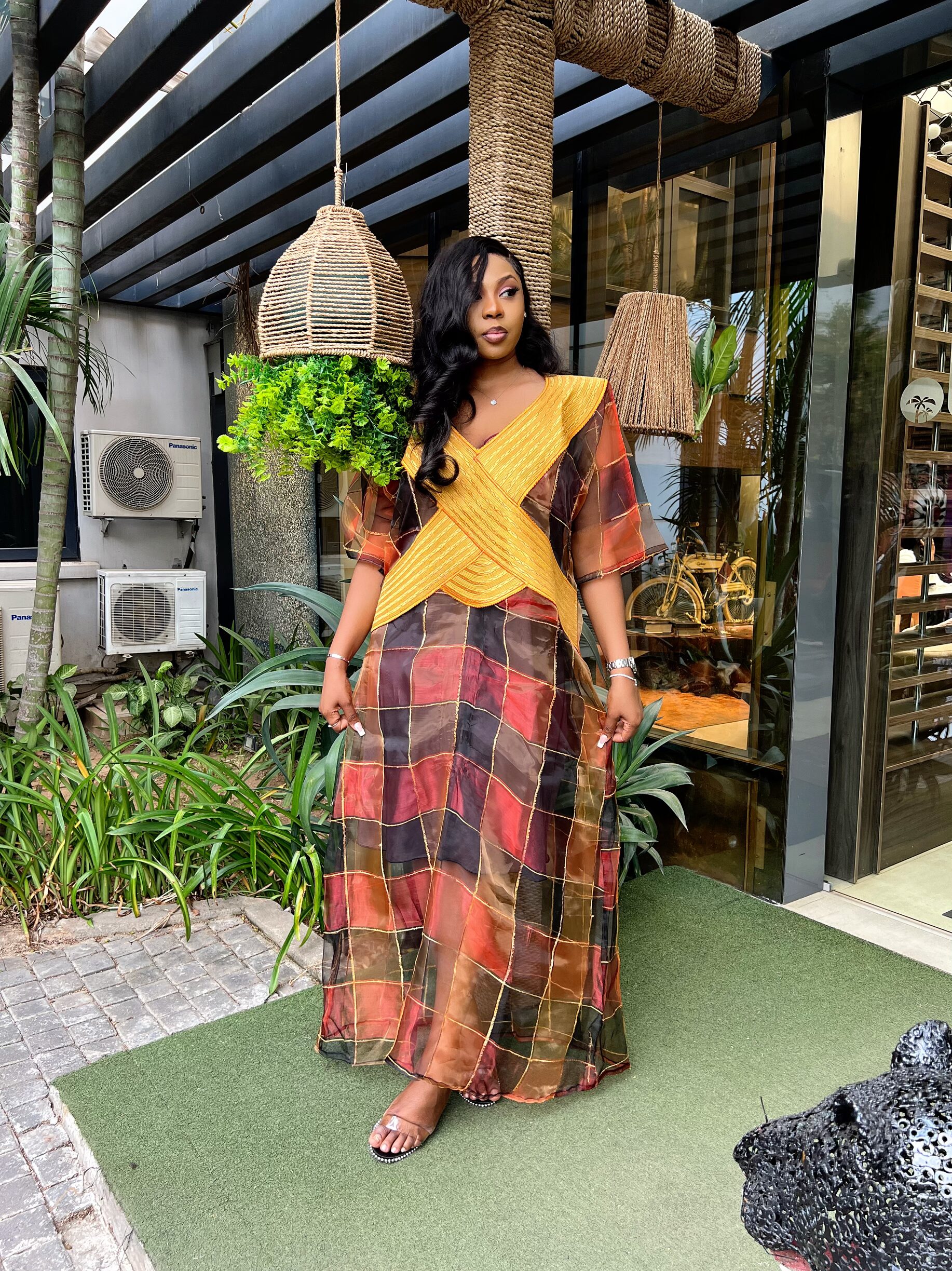 This piece made with a very colorful organza fabric to suit that event you want to stand out with the Dashiki cultural embroidery elements